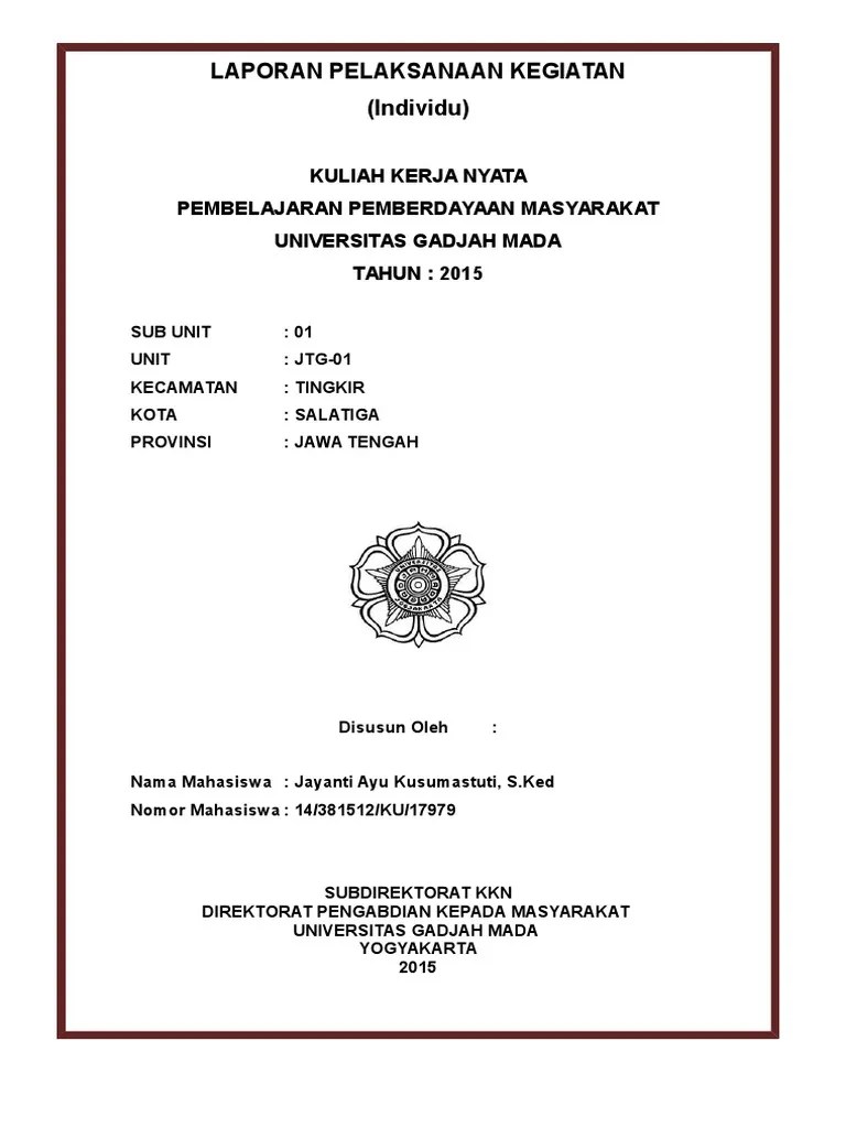 Contoh Laporan Kkn Online Individu - Jurnal Kegiatan Harian KKN 2016 / Sistematika laporan mingguan/kemajuan kkn mandiri 18;