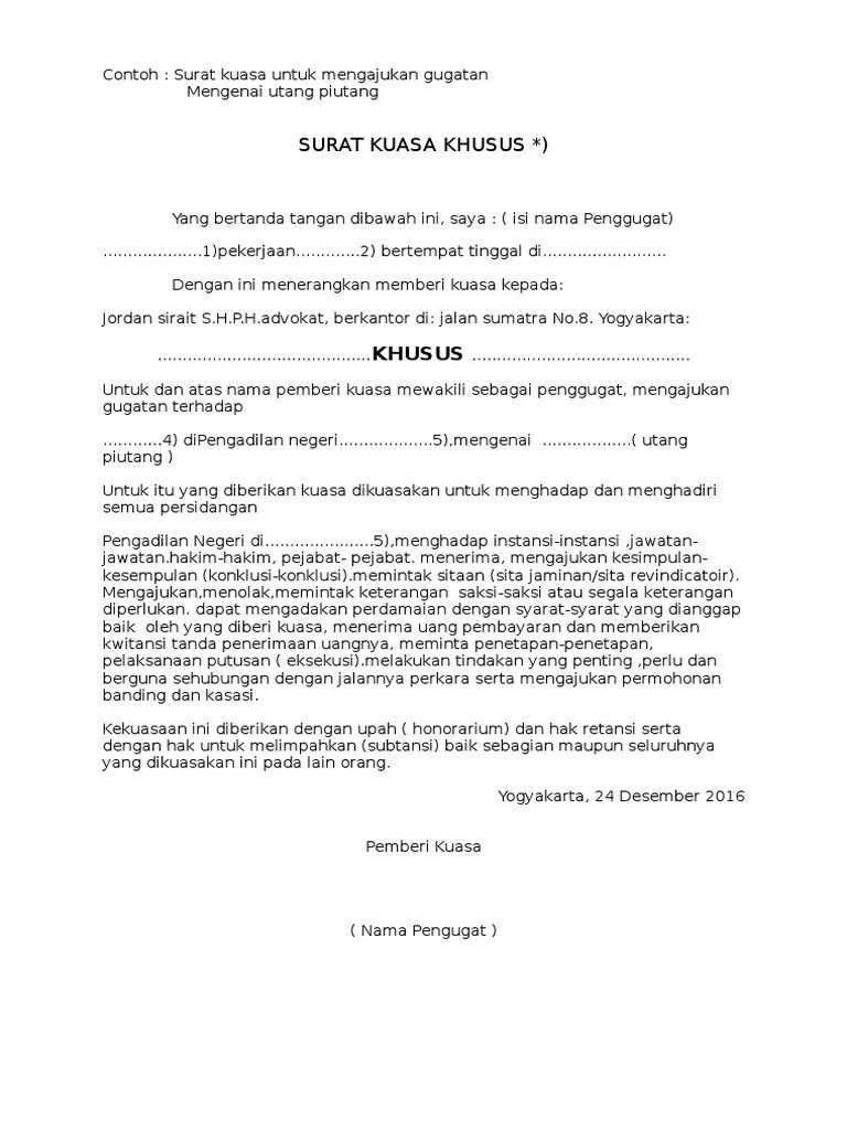 Contoh surat kuasa khusus (44.0 . Contoh format gugatan dan surat kuasa khusus. Andi tatang supriyadi & rekan | > contoh surat kuasa > surat kuasa di pengadilan. Berdasarkan surat kuasa khusus tanggal 21 maret 2021 (vide: Organisasi advokat namun tidak dapat menyusun surat kuasa dan gugatan,.
